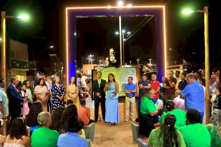 A primeira inauguração da tarde foi a Praça da Bíblia, um espaço criado para valorizar a fé e promover um ambiente acolhedor para evangelização, oração e convivência.