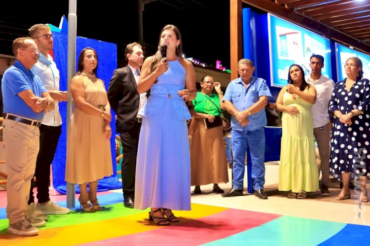 Logo em seguida, Marcela inaugurou a Praça dos Estudantes, também na Floriano Peixoto. O espaço foi projetado especialmente para os alunos que utilizam o transporte escolar.